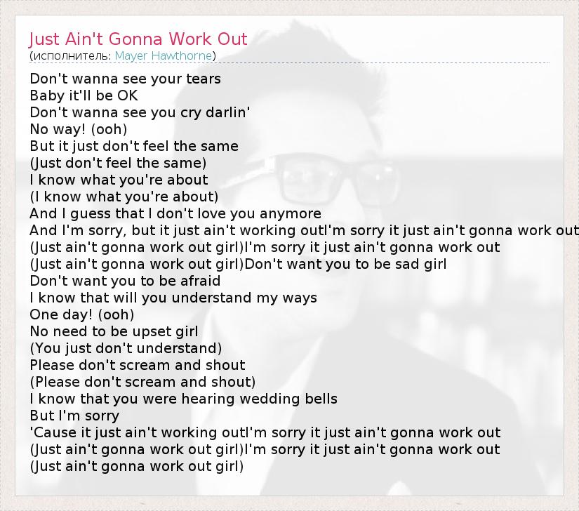 ГлавнаяИсполнителиMayer HawthorneJust Ain't Gonna Work Out