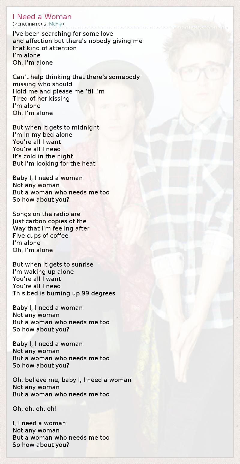 А как ты думаешь, о чем песня "I Need a Woman" ?