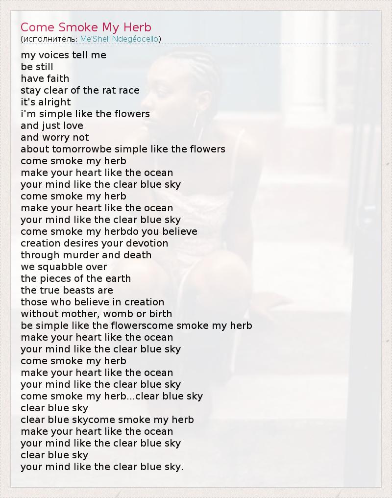 А как ты думаешь, о чем песня "Come Smoke My Herb" ?