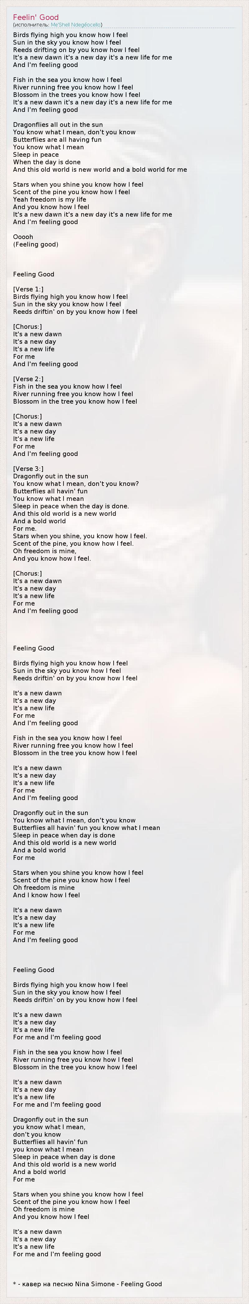 А как ты думаешь, о чем песня "Feelin' Good" ?