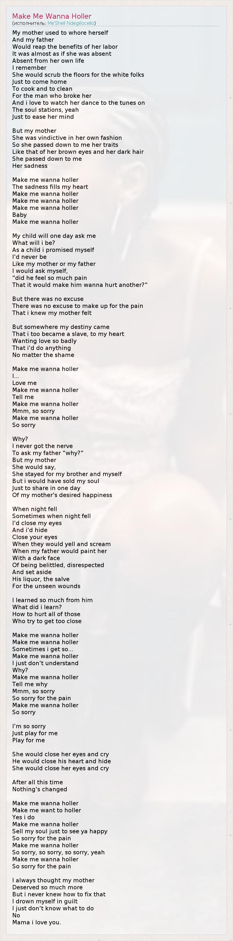 А как ты думаешь, о чем песня "Make Me Wanna Holler" ?