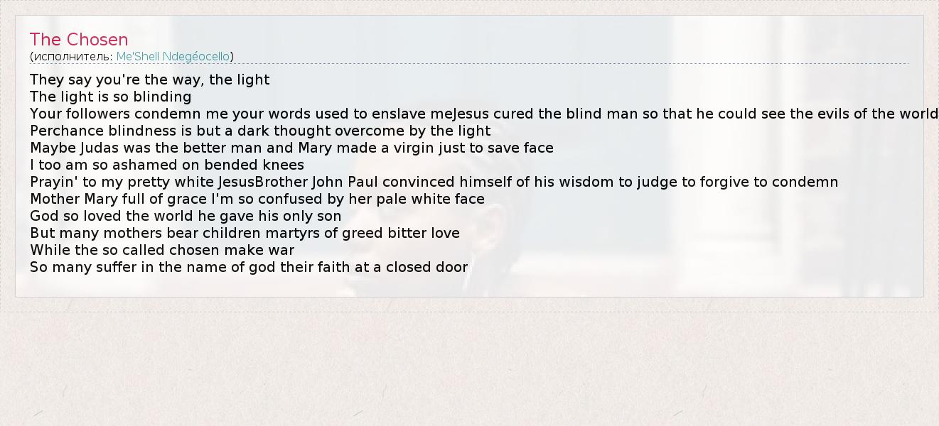 А как ты думаешь, о чем песня "The Chosen" ?
