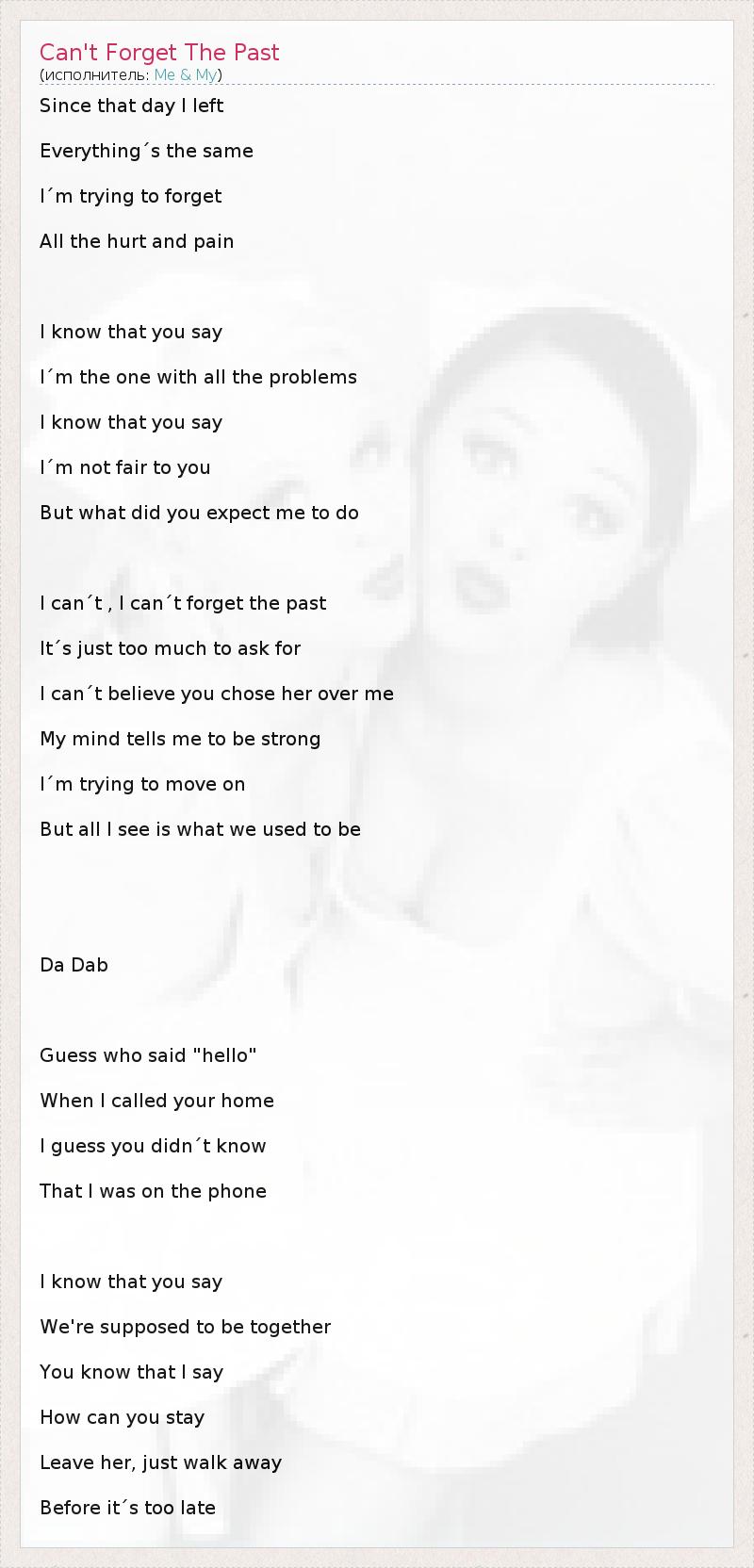 А как ты думаешь, о чем песня "Can't Forget The Past" ?