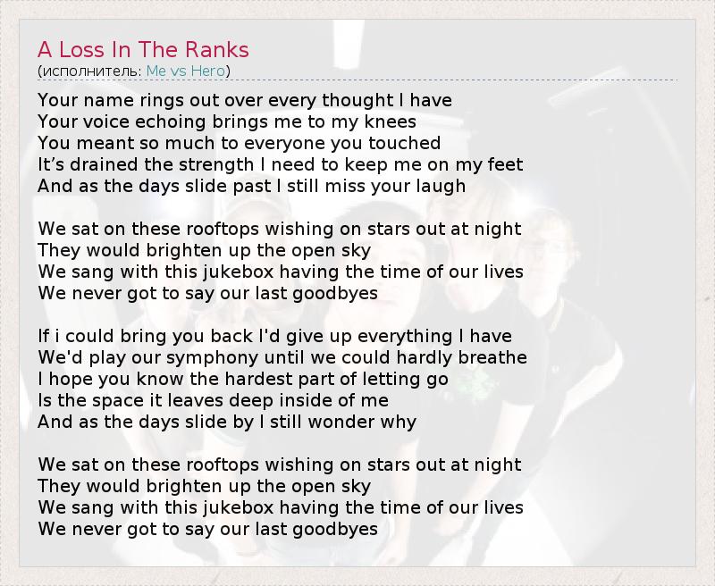 А как ты думаешь, о чем песня "A Loss In The Ranks" ?