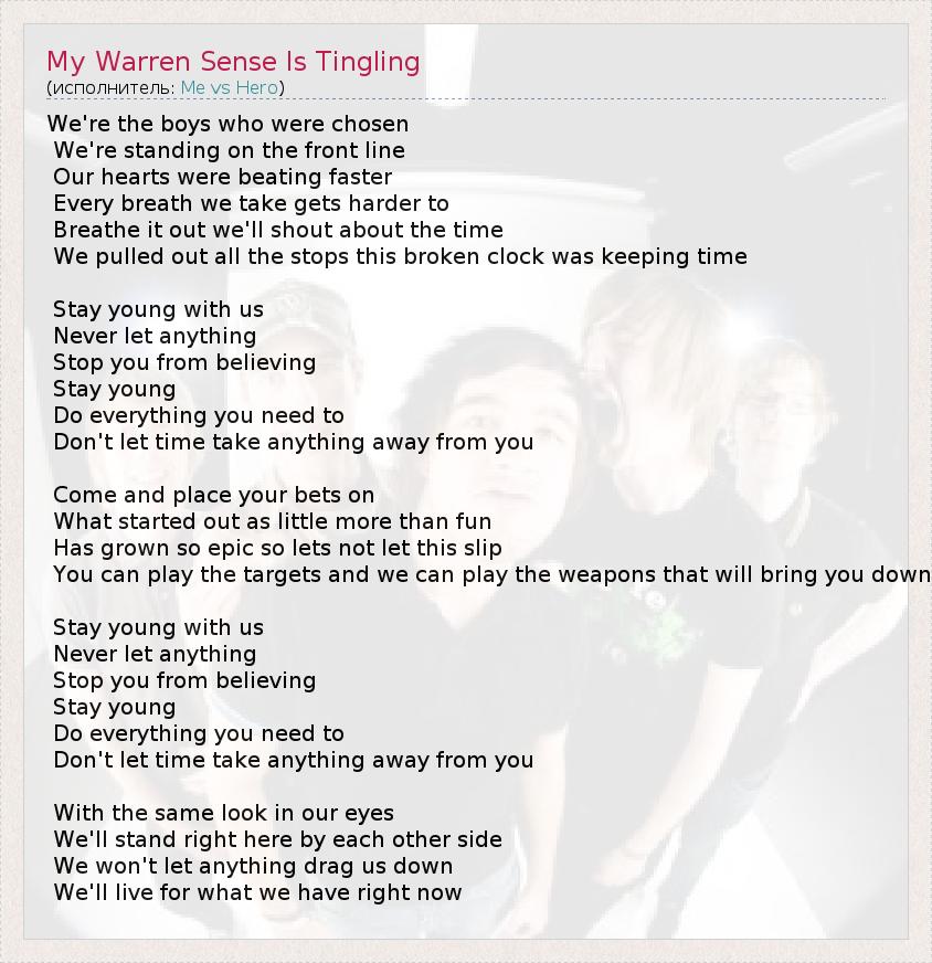 ГлавнаяИсполнителиMe vs HeroMy Warren Sense Is Tingling