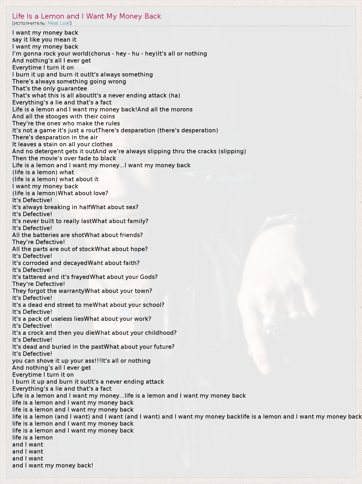 life is a lemon (and I want) and I want (and I want) and I want my money backlife is a lemon and I want my money back
