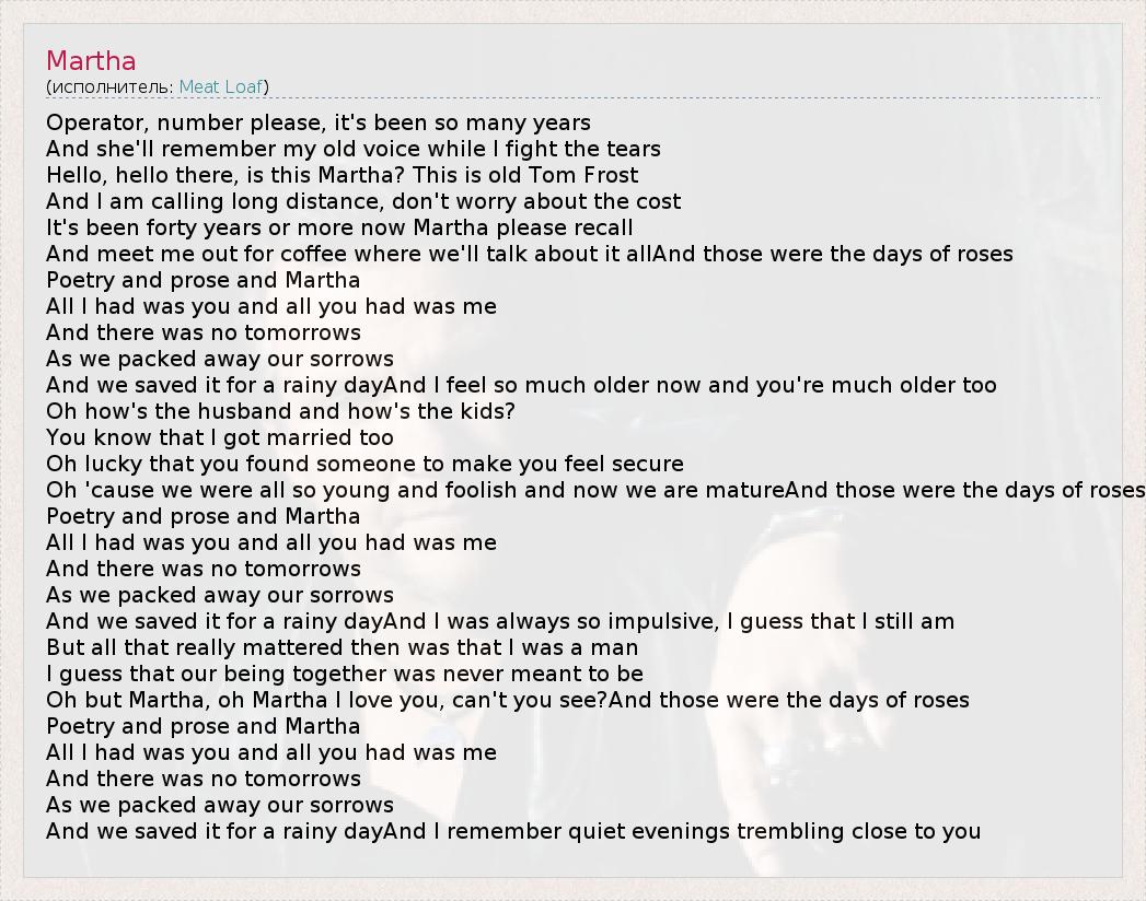 Oh but Martha, oh Martha I love you, can't you see?And those were the days of roses