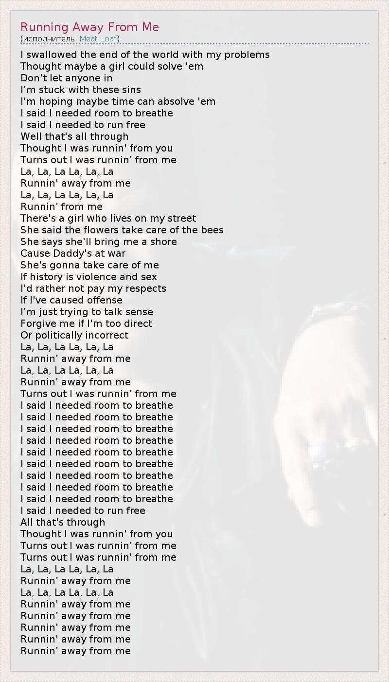 А как ты думаешь, о чем песня "Running Away From Me" ?