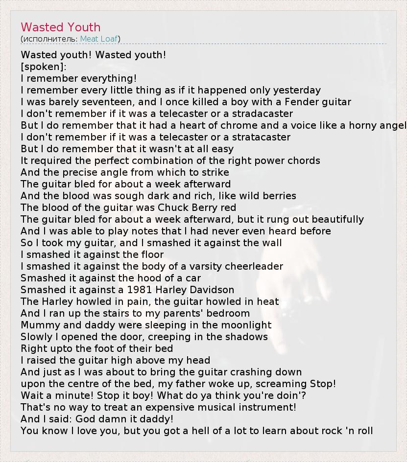 А как ты думаешь, о чем песня "Wasted Youth" ?