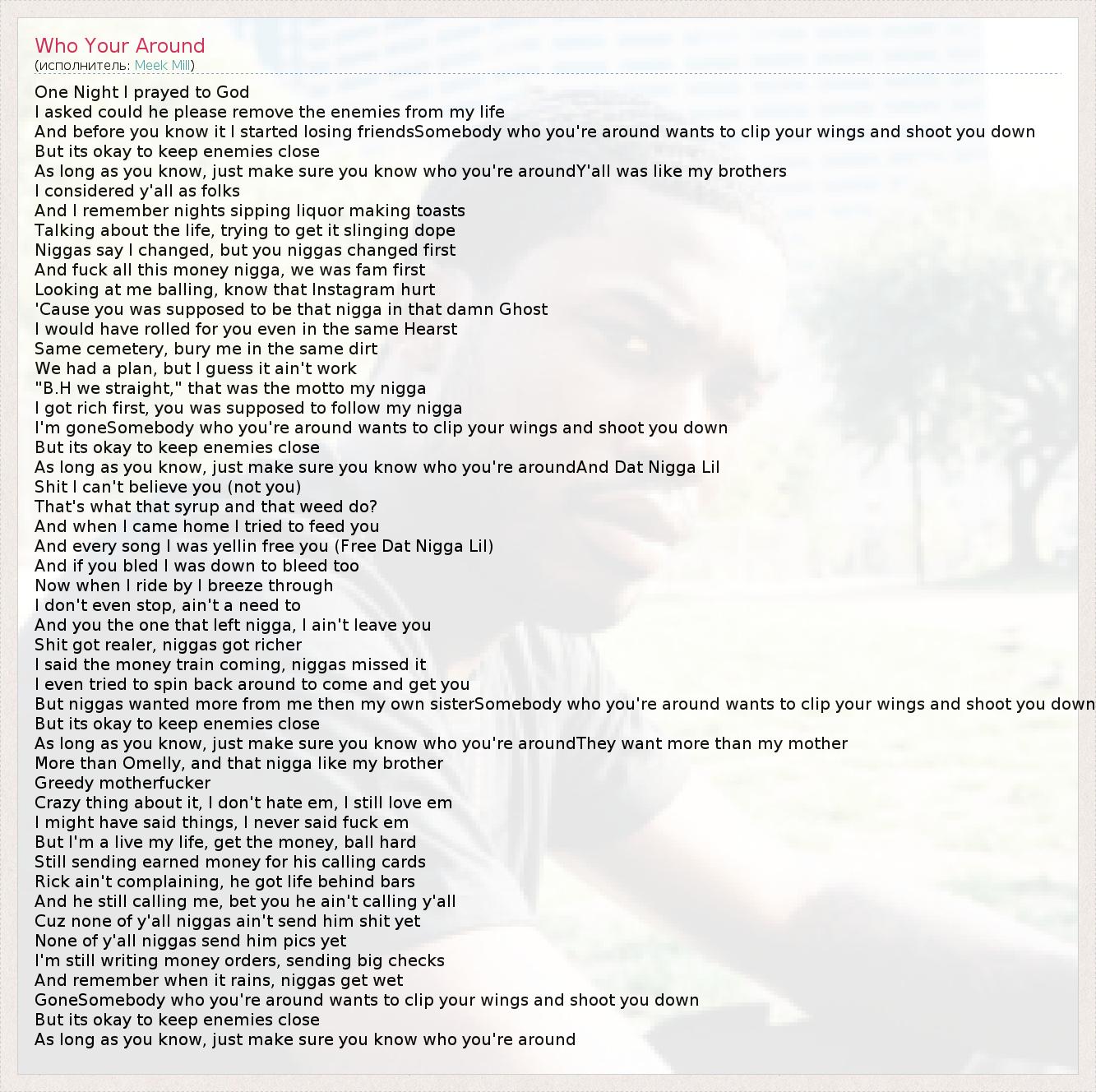А как ты думаешь, о чем песня "Who Your Around" ?