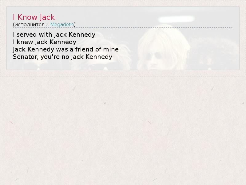 А как ты думаешь, о чем песня "I Know Jack" ?