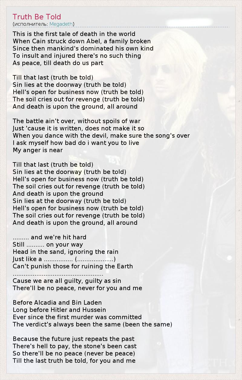 А как ты думаешь, о чем песня "Truth Be Told" ?