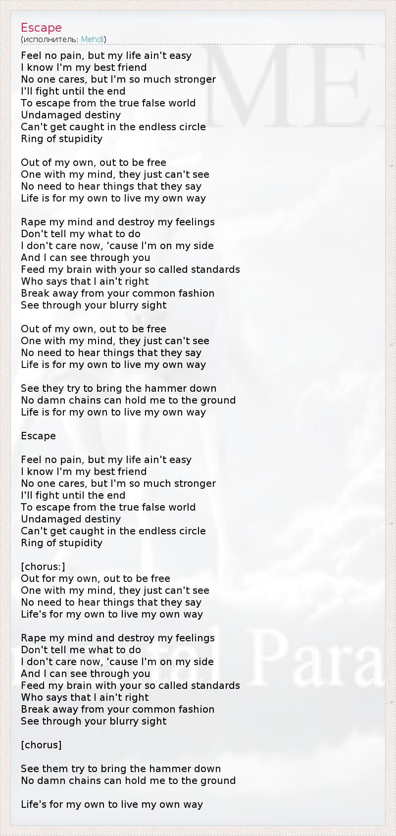 А как ты думаешь, о чем песня "Escape" ?