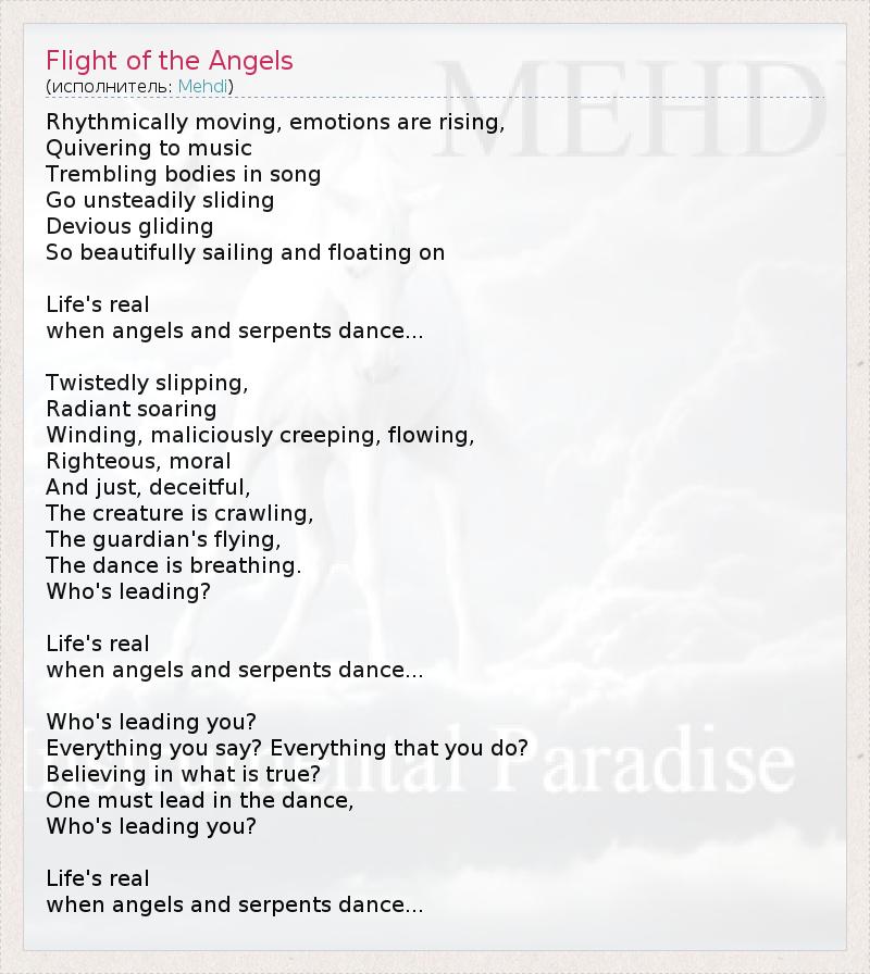 А как ты думаешь, о чем песня "Flight of the Angels" ?