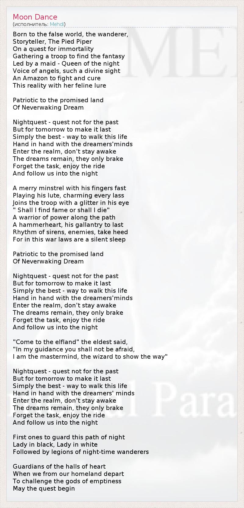 А как ты думаешь, о чем песня "Moon Dance" ?