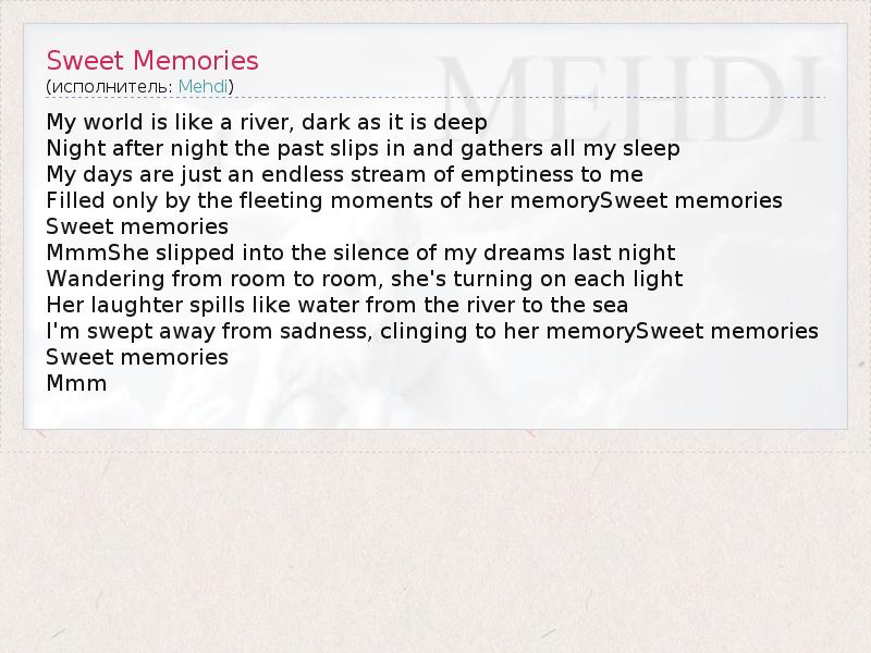 А как ты думаешь, о чем песня "Sweet Memories" ?
