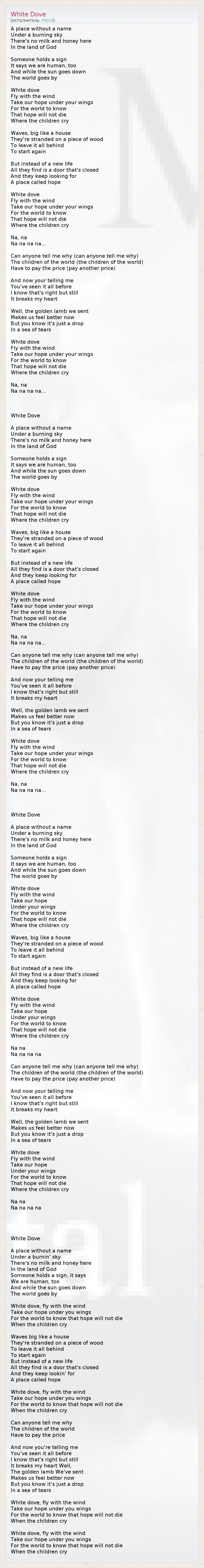 А как ты думаешь, о чем песня "White Dove" ?