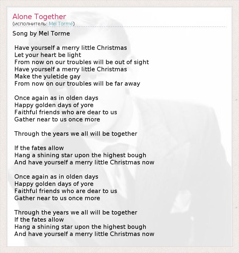 Это интересно:Mel Torme (Мел Торме)Мэле Торме был одним из самых разносторонних артистов среди современных вокалистов джаза. Его знали и помнят до сих пор как пианиста и барабанщика, композитора и аранжировщика, продюсера и ведущего ток-шоу на телевидении, но главное, за что он снискал всеобщую любовь, - это, конечно же, незабываемый голос. За него Торме получил прозвище "Бархатный туман", и это нисколько... продолжение