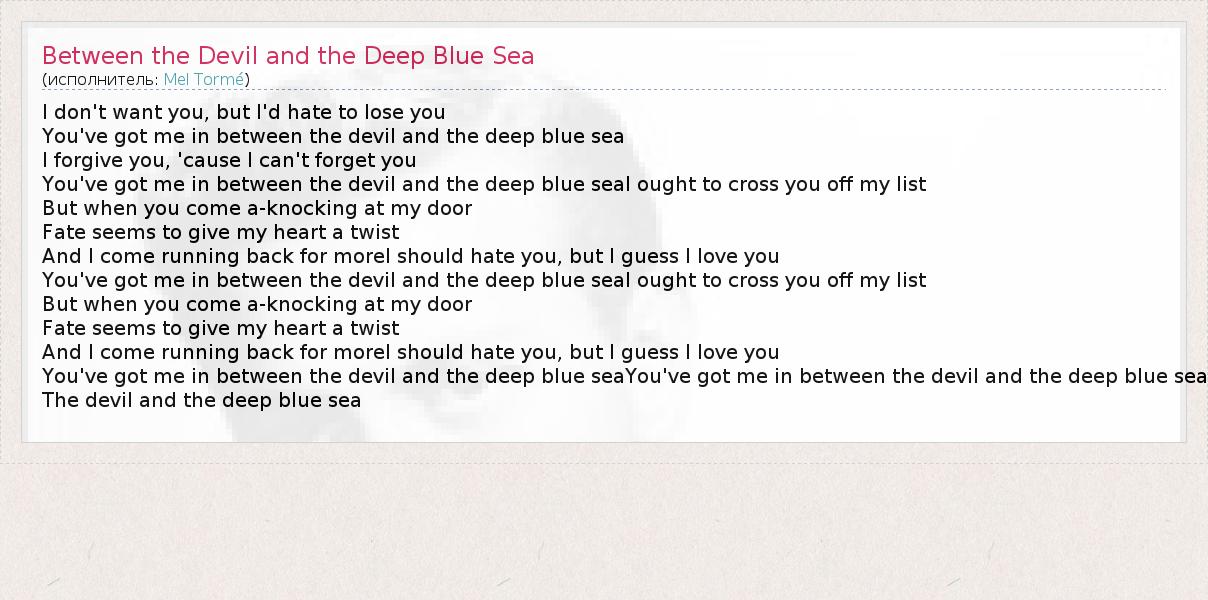 А как ты думаешь, о чем песня "Between the Devil and the Deep Blue Sea" ?
