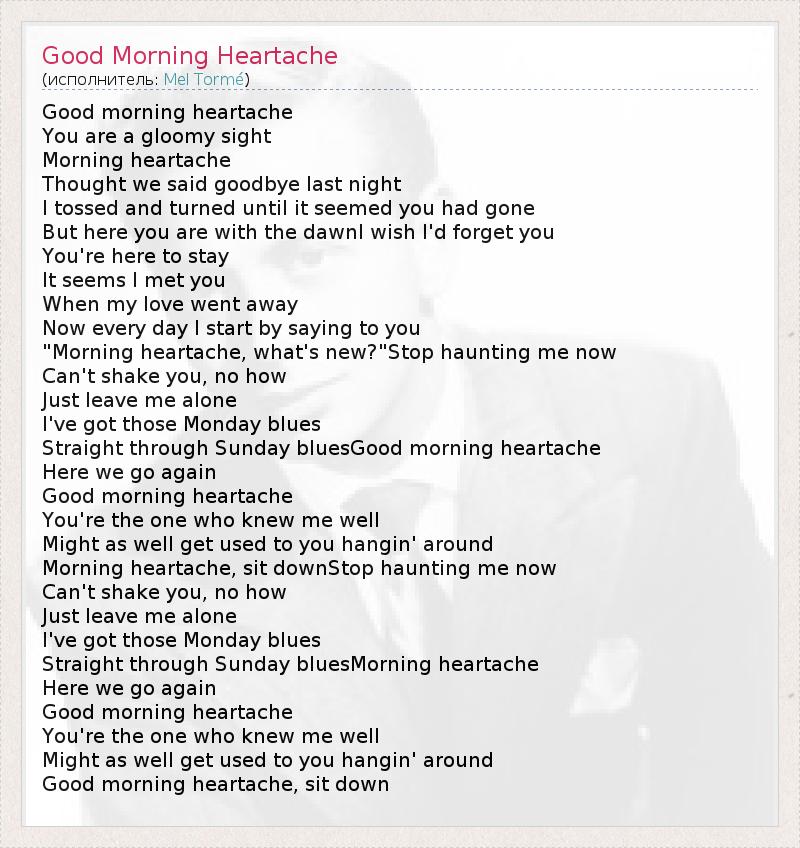 А как ты думаешь, о чем песня "Good Morning Heartache" ?