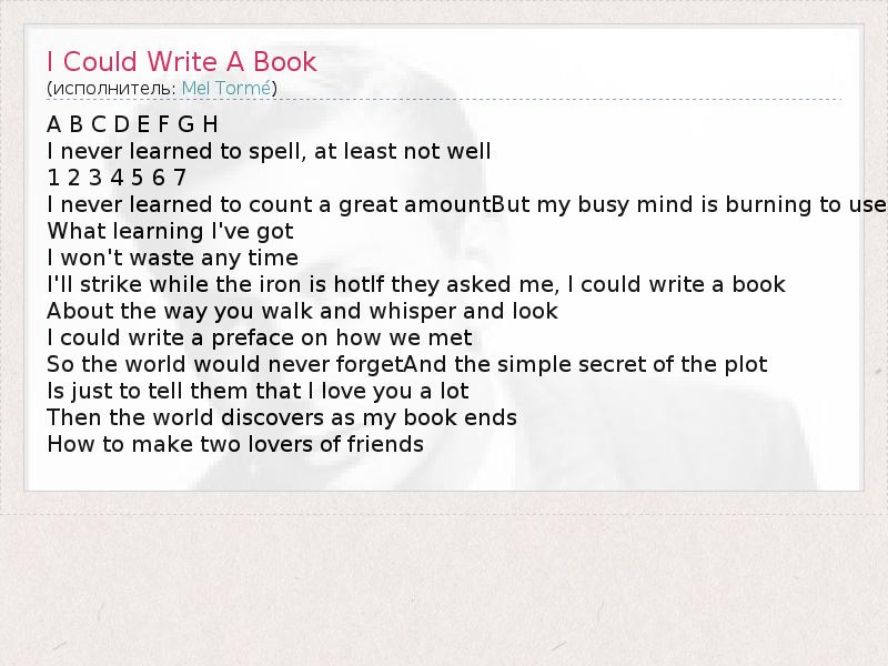 А как ты думаешь, о чем песня "I Could Write A Book" ?
