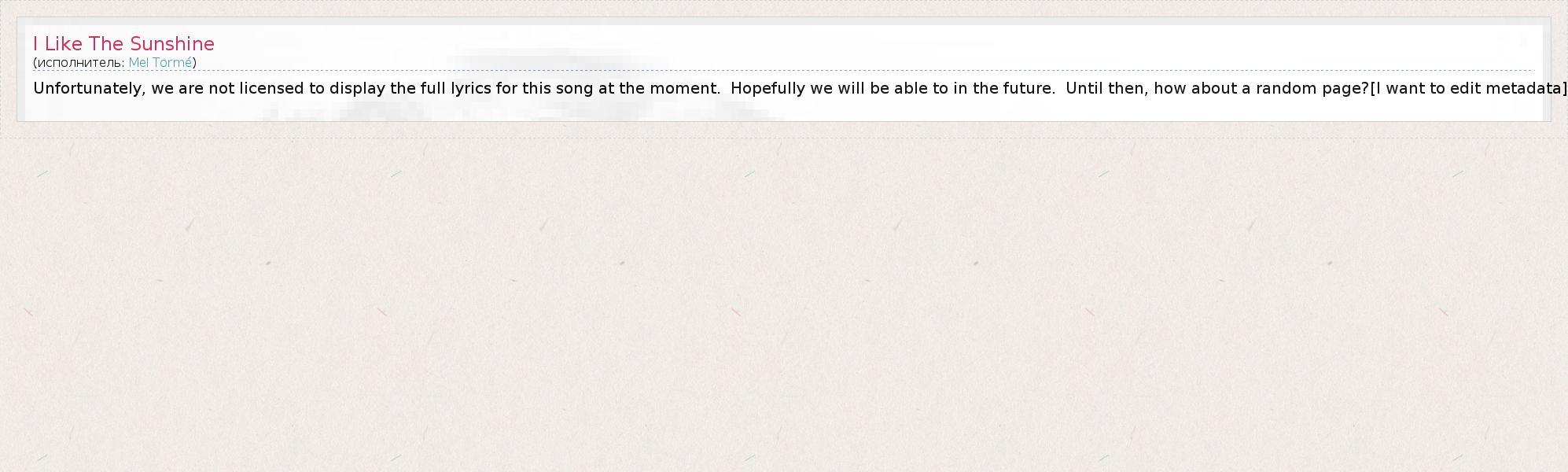 А как ты думаешь, о чем песня "I Like The Sunshine" ?