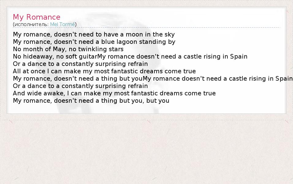 А как ты думаешь, о чем песня "My Romance" ?