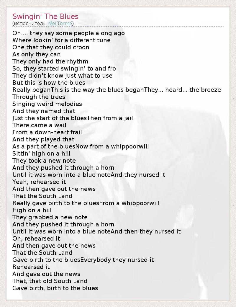 А как ты думаешь, о чем песня "Swingin' The Blues" ?