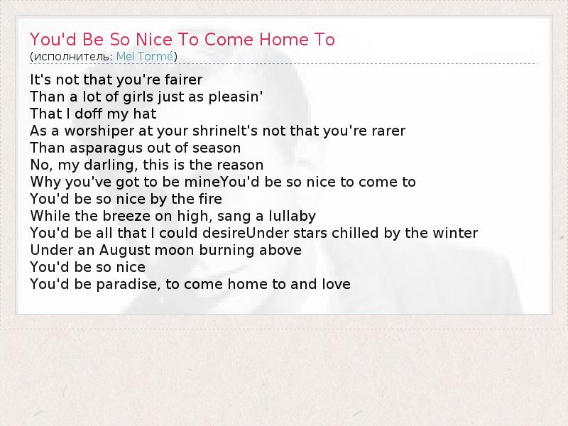 А как ты думаешь, о чем песня "You'd Be So Nice To Come Home To" ?