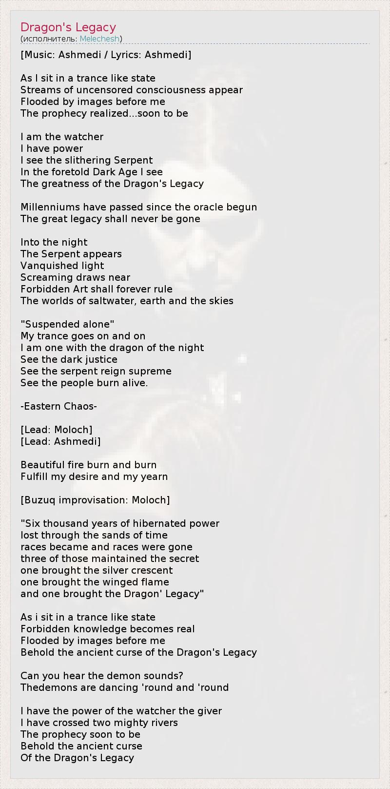 А как ты думаешь, о чем песня "Dragon's Legacy" ?