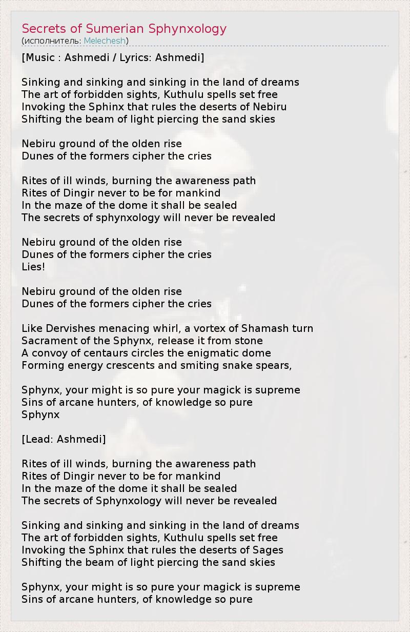 А как ты думаешь, о чем песня "Secrets of Sumerian Sphynxology" ?