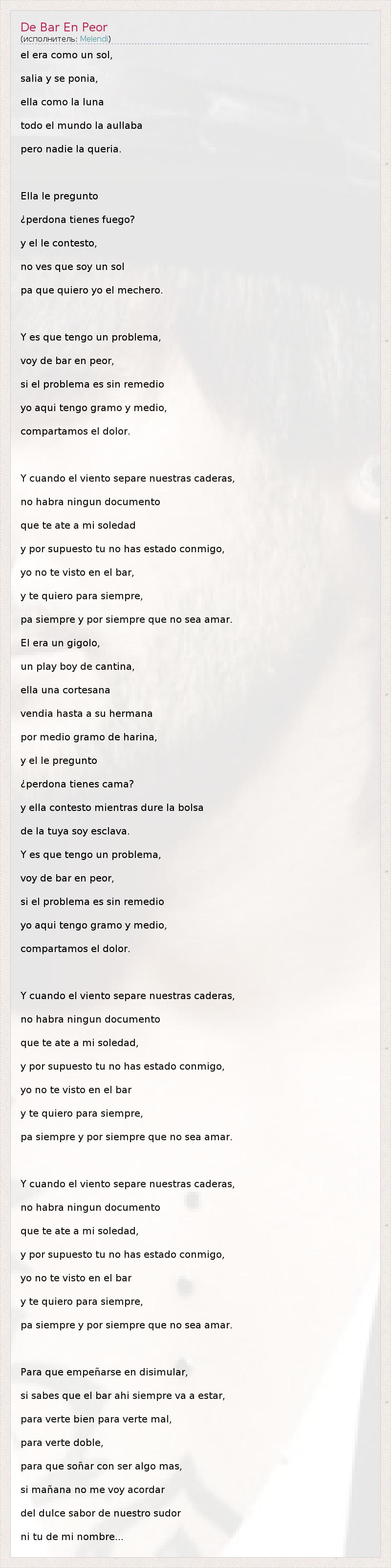 А как ты думаешь, о чем песня "De Bar En Peor" ?