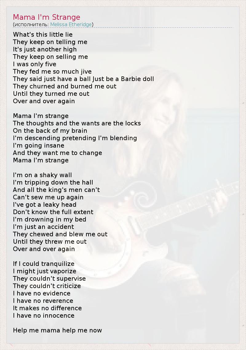 А как ты думаешь, о чем песня "Mama I'm Strange" ?