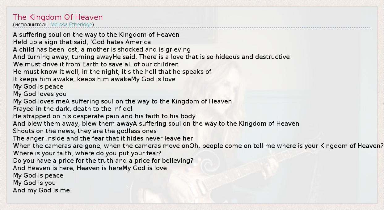 А как ты думаешь, о чем песня "The Kingdom Of Heaven" ?