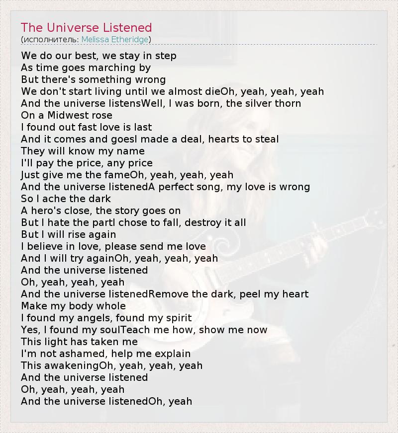 А как ты думаешь, о чем песня "The Universe Listened" ?