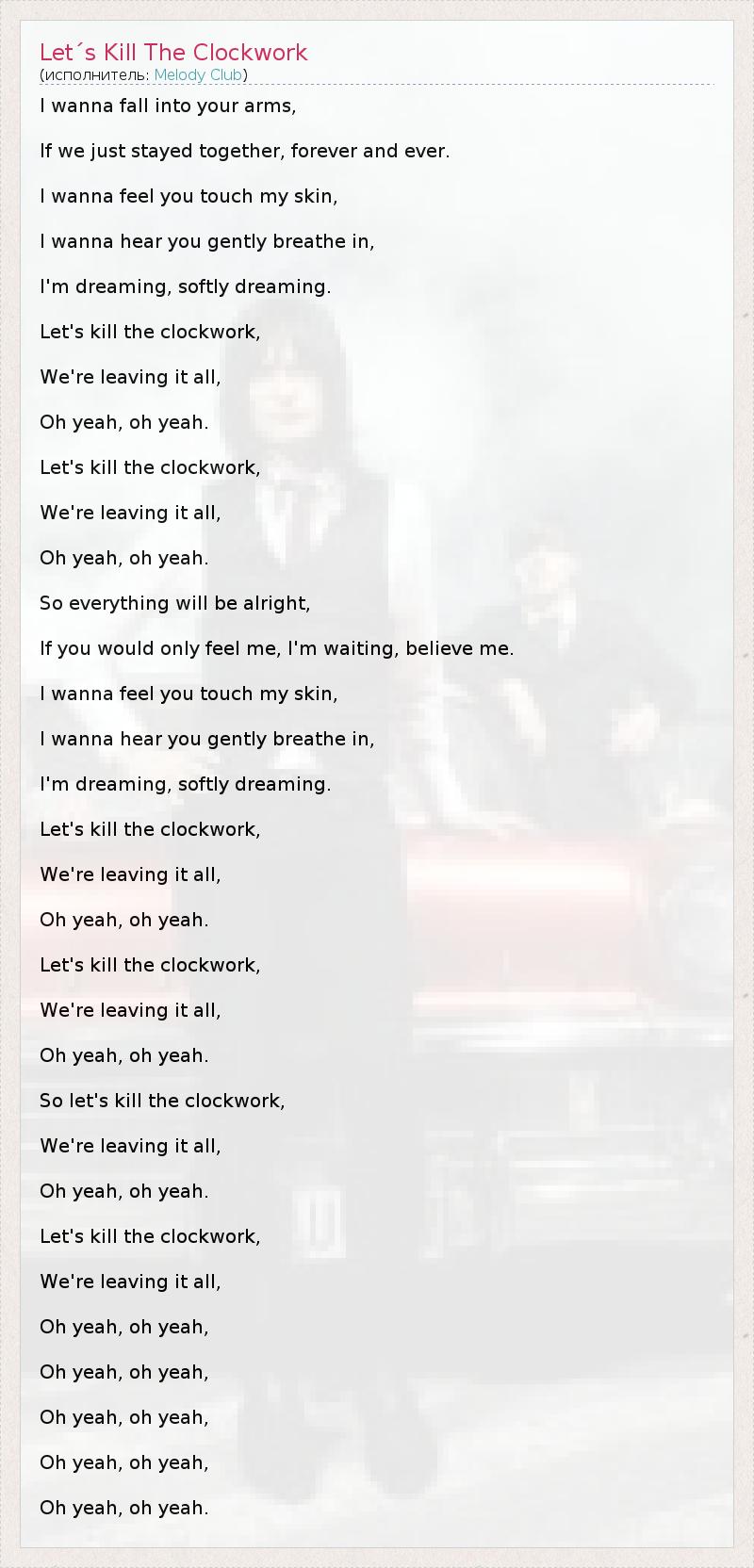 ГлавнаяИсполнителиMelody ClubLet´s Kill The Clockwork