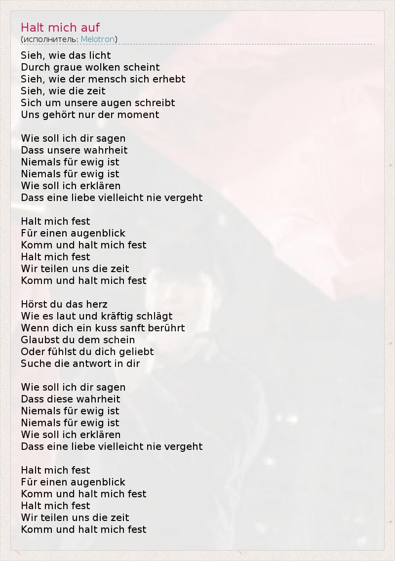 А как ты думаешь, о чем песня "Halt mich auf" ?