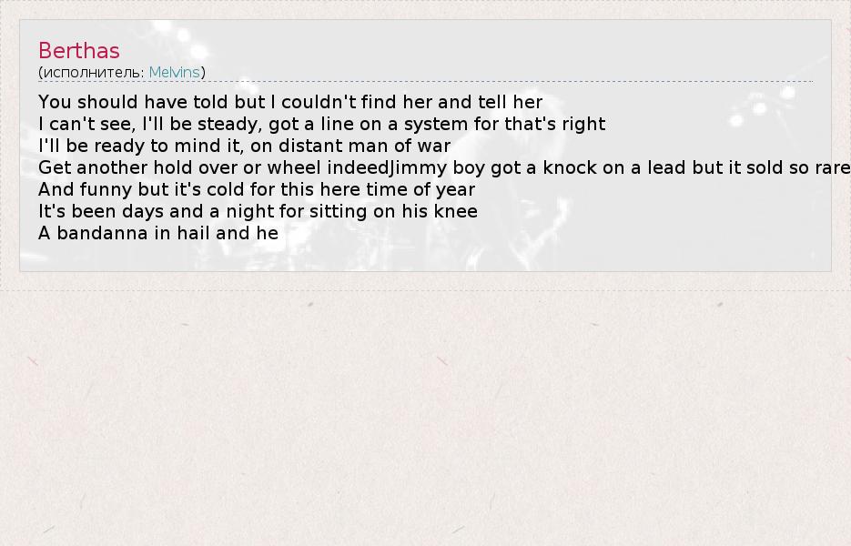 Это интересно:Melvins - американская группа, уже 30 лет играющая разнообразную музыку в разных жанрах и стилях металла, рока, и не только. За 30 лет они выпустили огромную кучу альбомов, EP, и синглов, на которых можно услышать: sludge metal, grunge, stoner metal, noise rock, hardcore punk, drone metal,... продолжение