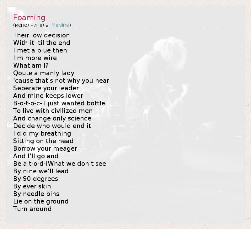 А как ты думаешь, о чем песня "Foaming" ?
