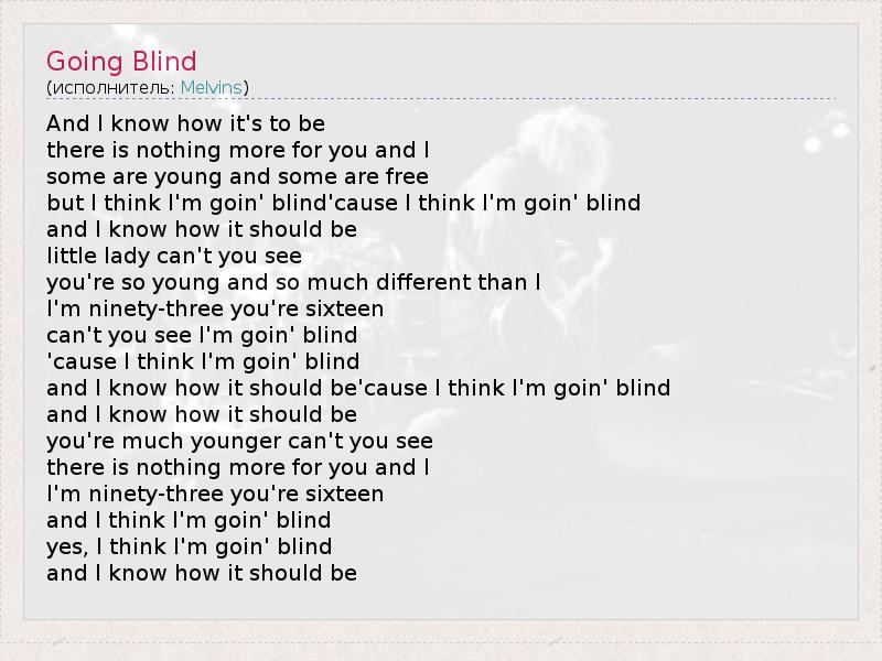 but I think I'm goin' blind'cause I think I'm goin' blind