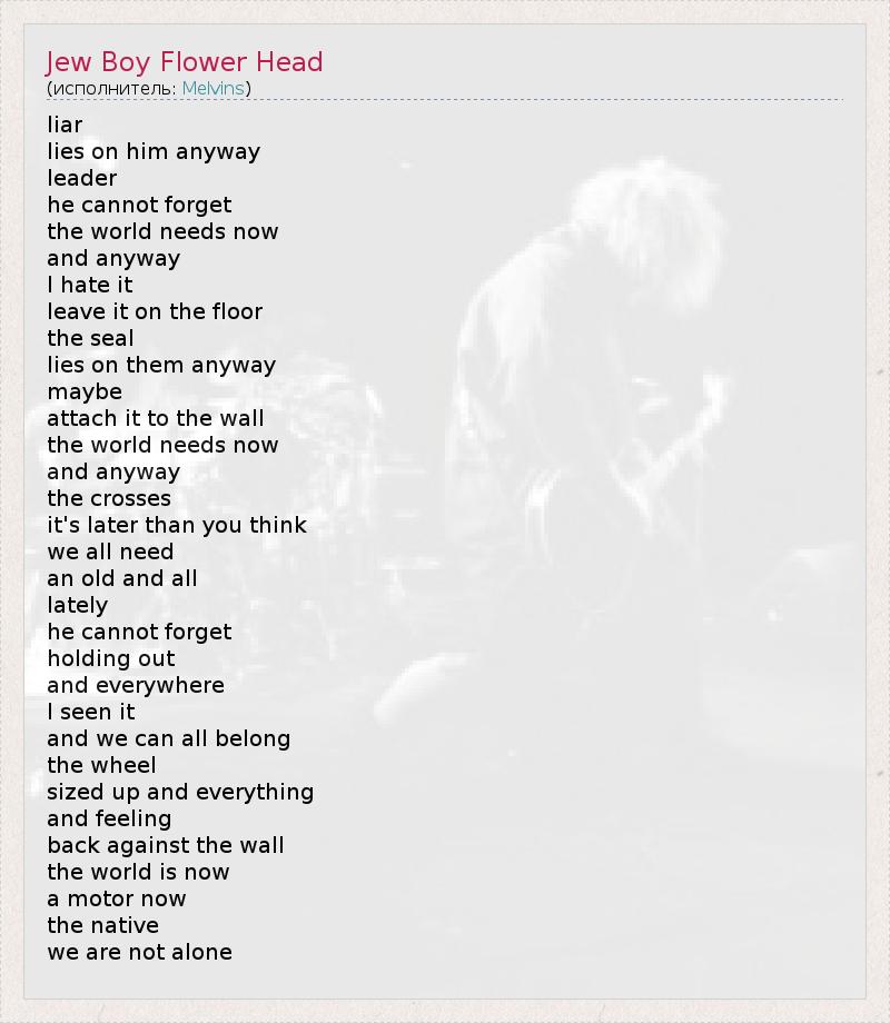А как ты думаешь, о чем песня "Jew Boy Flower Head" ?