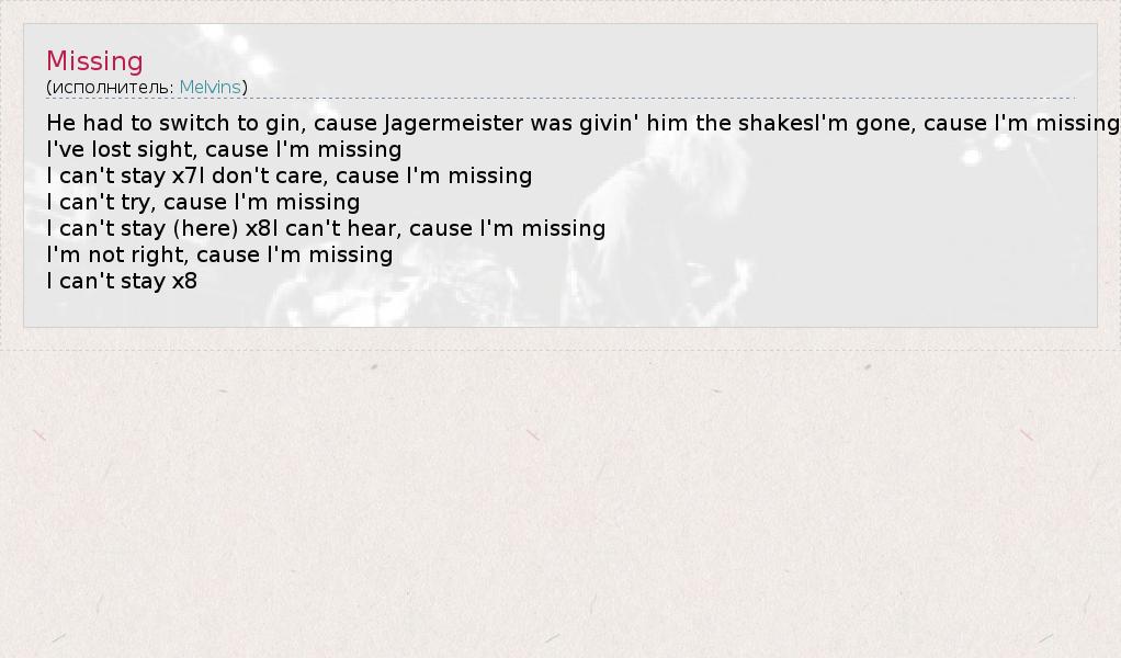 Это интересно:Melvins - американская группа, уже 30 лет играющая разнообразную музыку в разных жанрах и стилях металла, рока, и не только. За 30 лет они выпустили огромную кучу альбомов, EP, и синглов, на которых можно услышать: sludge metal, grunge, stoner metal, noise rock, hardcore punk, drone metal,... продолжение