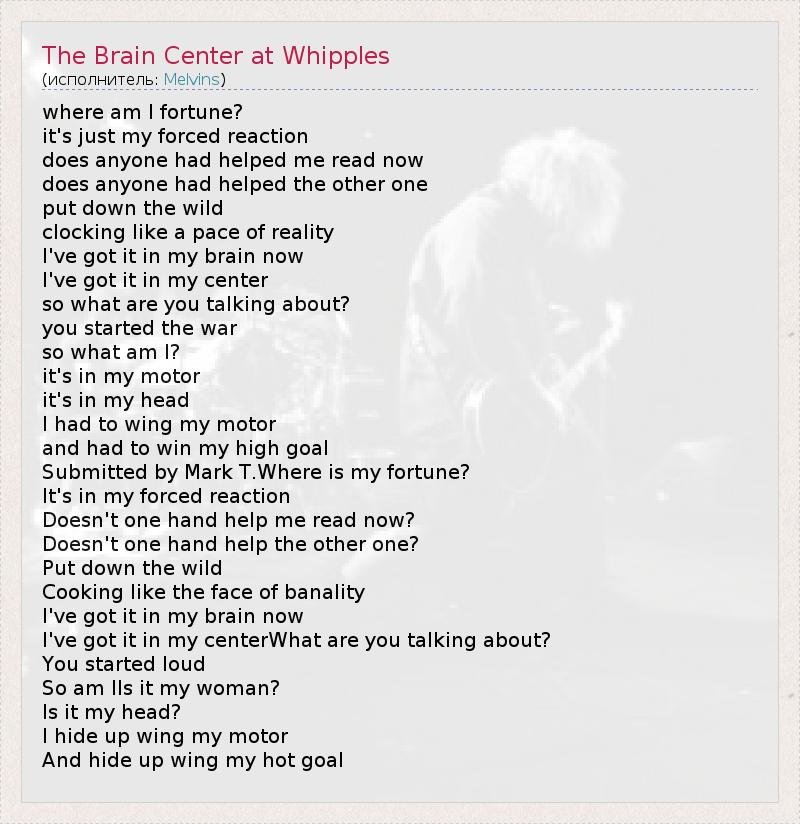 А как ты думаешь, о чем песня "The Brain Center at Whipples" ?