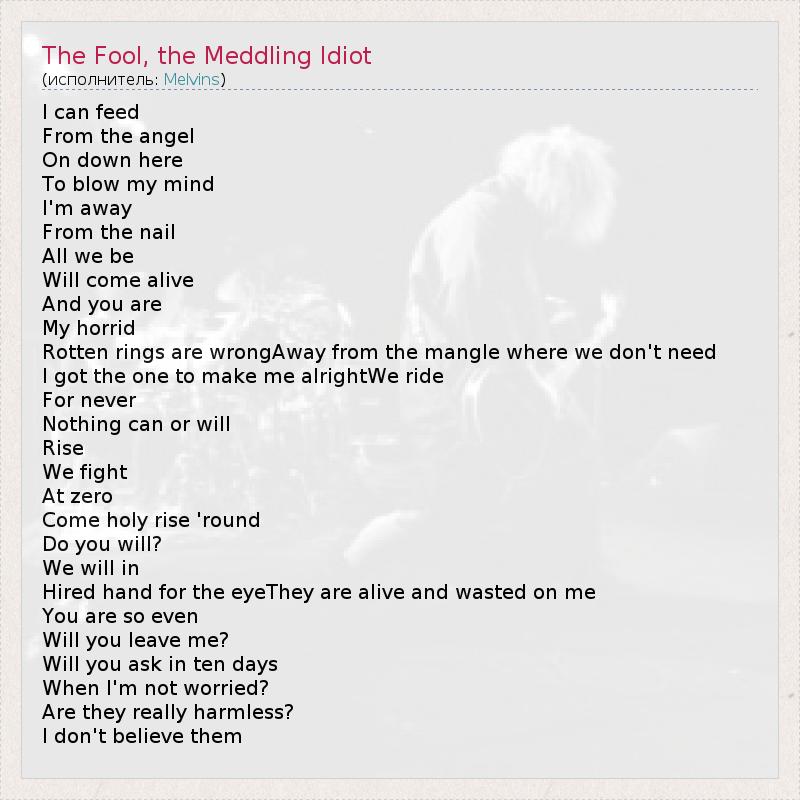 А как ты думаешь, о чем песня "The Fool, the Meddling Idiot" ?