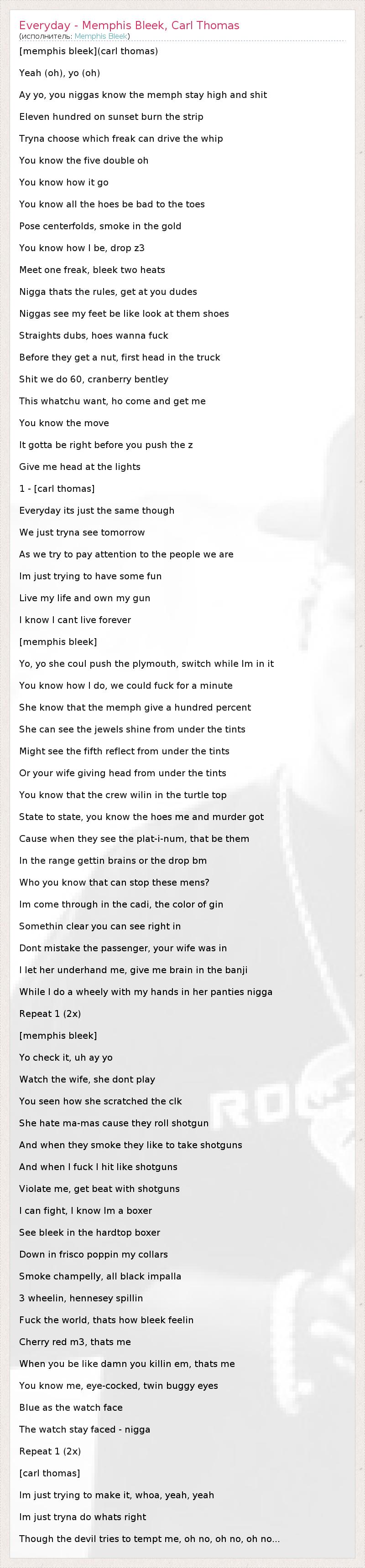 А как ты думаешь, о чем песня "Everyday - Memphis Bleek, Carl Thomas" ?