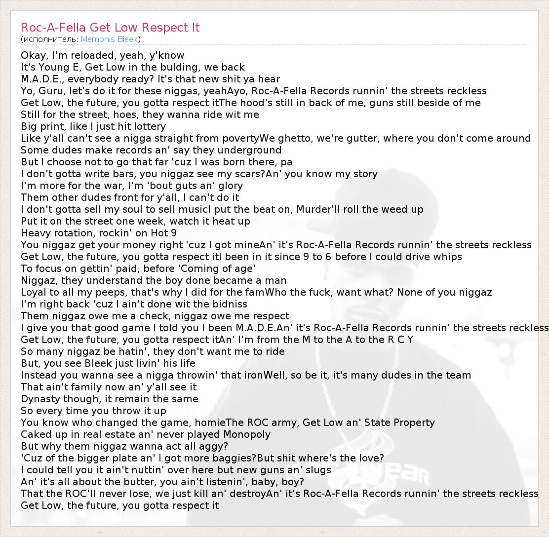 А как ты думаешь, о чем песня "Roc-A-Fella Get Low Respect It" ?