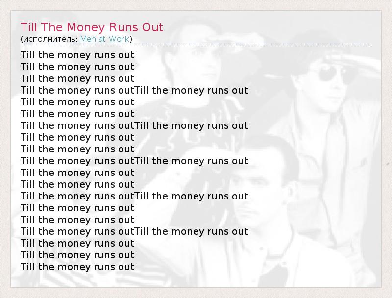 А как ты думаешь, о чем песня "Till The Money Runs Out" ?