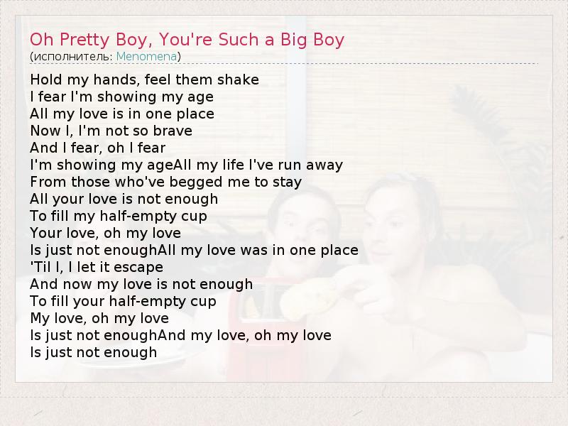 ГлавнаяИсполнителиMenomenaOh Pretty Boy, You're Such a Big Boy