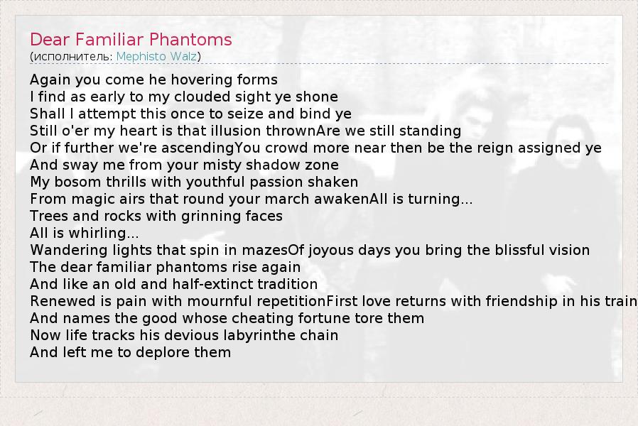 А как ты думаешь, о чем песня "Dear Familiar Phantoms" ?