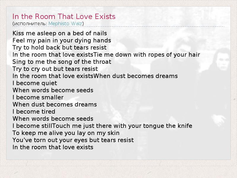 ГлавнаяИсполнителиMephisto WalzIn the Room That Love Exists